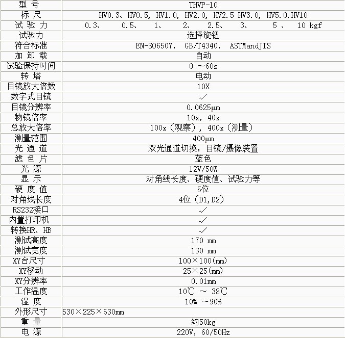 產(chǎn)品概述: THVP-10大屏數(shù)顯自動轉(zhuǎn)塔維氏系列硬度計(jì)是光機(jī)電一體化的高新技術(shù)產(chǎn)品,顯示屏使用大的LCD屏幕,手持維氏硬度計(jì),它造型新穎、美觀,維氏硬度計(jì)圖片,具有良好的直觀性、可 操作性和可靠性,維氏硬度計(jì)測量誤差,是測試維氏硬度的理想產(chǎn)品。該機(jī)的壓頭和物鏡之間的轉(zhuǎn)換采用自動切換裝置。適用于測量微小、薄形試件、表面滲鍍處理后的零件和對瑪瑙、玻 璃、陶瓷等脆性材料的顯微和努氏硬度的測定 以及涂層、表面覆層、層壓金屬、熱處理碳化層和淬火硬化層的深度與硬度梯度的測定。是科研機(jī)構(gòu)、工廠及質(zhì)檢部 門進(jìn)行研究和檢測的理想的硬度測試儀器。 功能特點(diǎn): 1、硬度計(jì)在機(jī)械上采用精密的結(jié)構(gòu)設(shè)計(jì),維氏硬度計(jì) 美國,在光學(xué)上采用高倍率物鏡和數(shù)顯式測微目鏡,維氏硬度計(jì) 翻譯,測量光源采用冷光源等先進(jìn)技術(shù)。 2、采用閉環(huán)式加載控制系統(tǒng),維氏硬度計(jì)算,使試驗(yàn)力精度提高,維氏硬度計(jì)作用,示值的重復(fù)性及穩(wěn)定性佳。該系統(tǒng)用在維氏硬度計(jì)上,在國內(nèi)屬首創(chuàng)。 3、 操作由面板上的觸摸鍵輸入,維氏硬度計(jì) 深圳,能預(yù)置試驗(yàn)力保荷時間、調(diào)節(jié)測量光源的強(qiáng)弱、選擇維氏或努氏測試模式、硬度轉(zhuǎn)換標(biāo)尺、文件號與儲存等。并能在屏幕 上顯示測量壓痕長度、硬度值、測量次數(shù)和年、月、日及時間等,維氏硬度計(jì)日常點(diǎn)檢表,試驗(yàn)結(jié)果和數(shù)據(jù)處理,維氏,并通過打印機(jī)輸出,還能通過RS232接口與計(jì)算機(jī)連接。 4、硬度計(jì)還可根據(jù)用戶特殊需求配置CCD裝置、視屏裝置和攝像裝置 技術(shù)參數(shù):