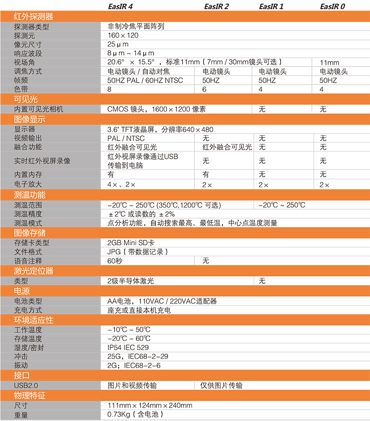 應(yīng)用特點(diǎn) 自動(dòng)對(duì)焦技術(shù) 紅外及可見(jiàn)光均可進(jìn)行自動(dòng)對(duì)焦 靈活的電池適配性 隨處可見(jiàn)的普通AA電池可保證高效持續(xù)的工作效率 紅外融合技術(shù) 幫助你快速準(zhǔn)確發(fā)現(xiàn)異常之處 智能導(dǎo)航界面 無(wú)需使用說(shuō)明書(shū)便能輕松快速地操作使用 堅(jiān)固且人性化的 外觀設(shè)計(jì)方便單手操作的設(shè)計(jì),紅外熱像儀技術(shù)指標(biāo),同時(shí)具備抗3米跌落的能力